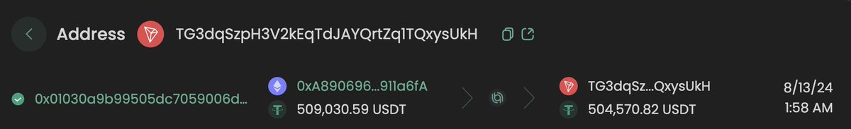 On August 13th funds were bridged from Ethereum to Tron address tied to Yicon.