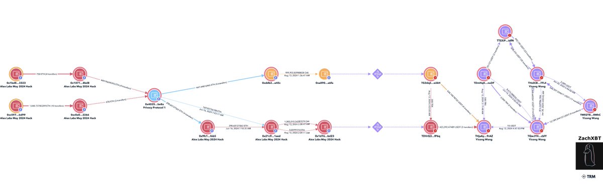 Funds were then commingled with the Alex hack and bridged to Tron addresses tied to Yicong on August 13th.