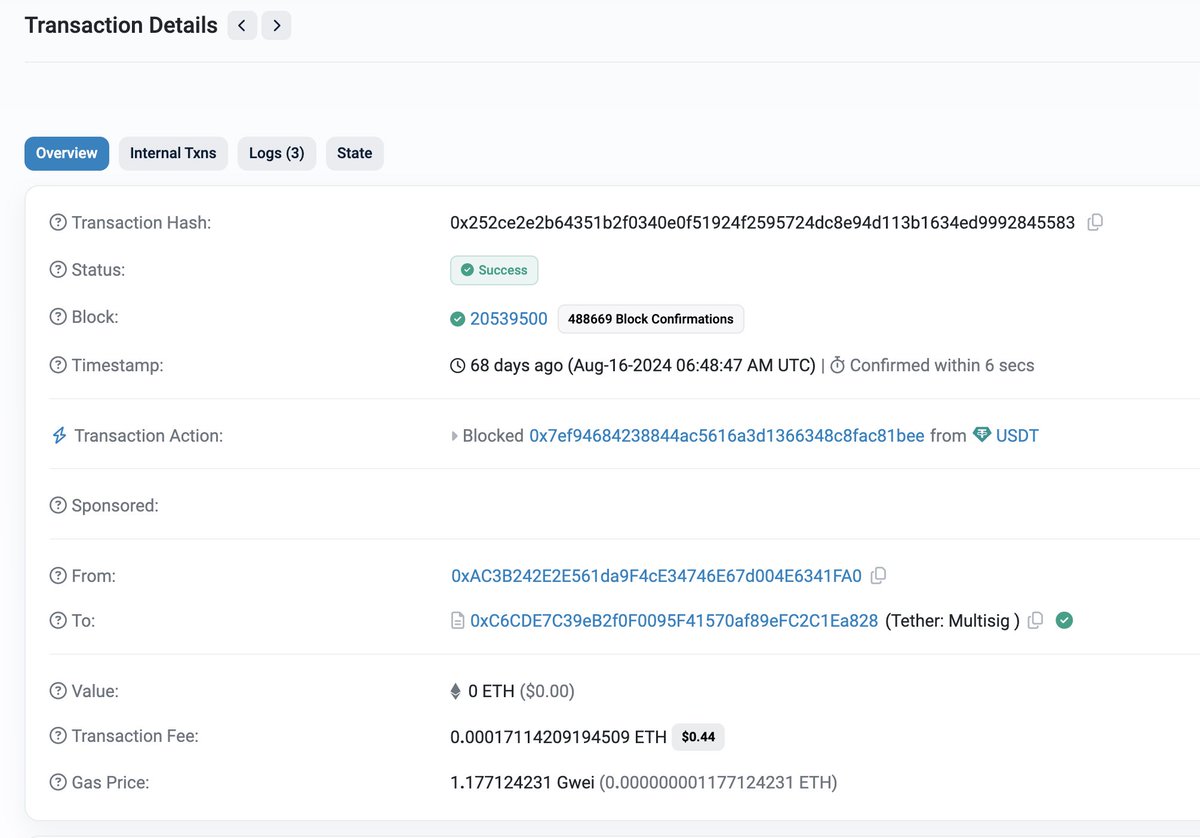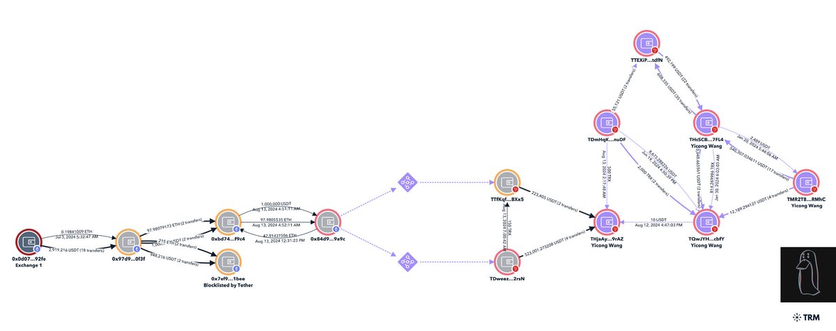 9/ An Ethereum address blacklisted by Tether in August 2024 with 948K is also directly tied to Yicong.