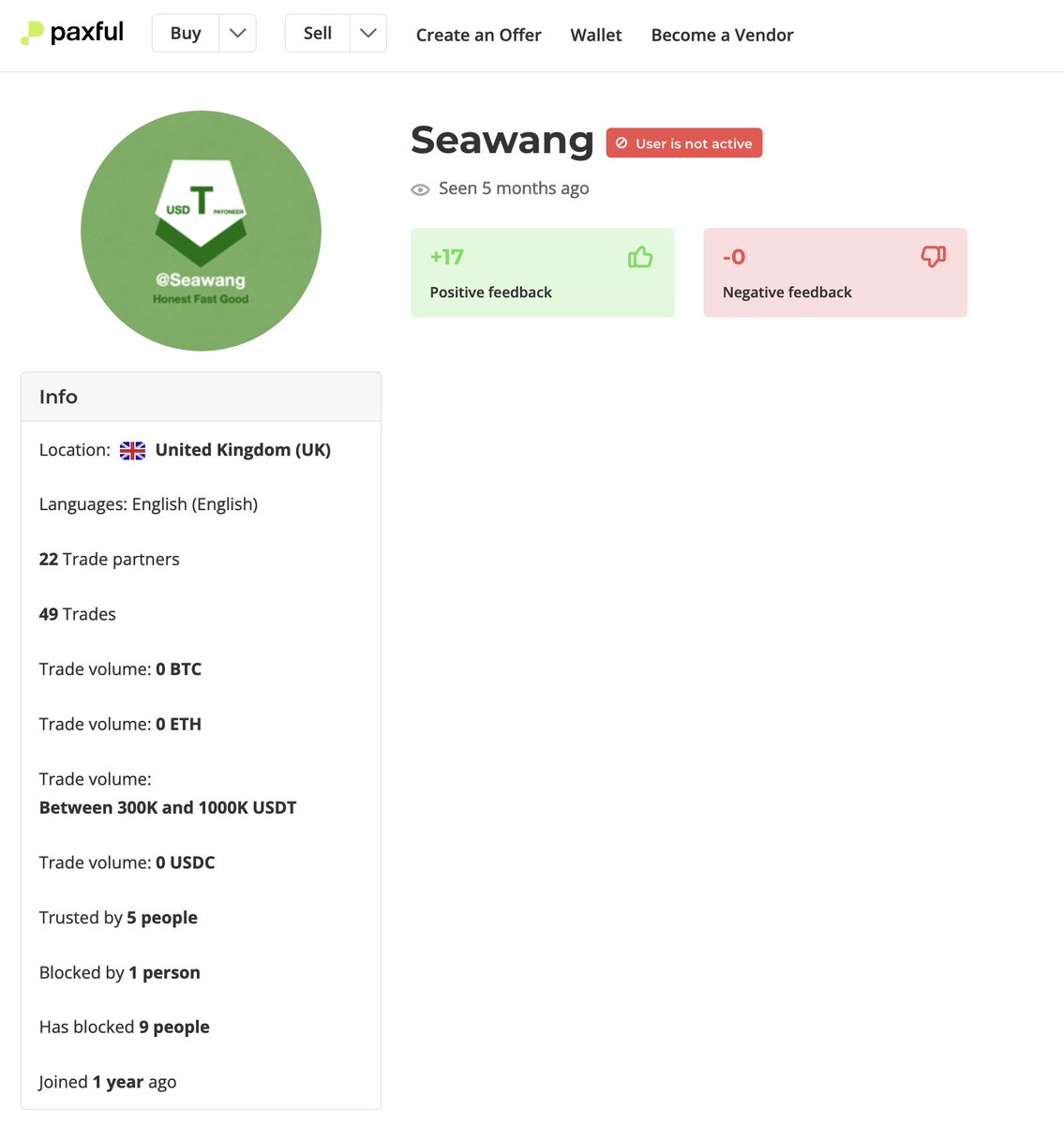 10/ While Yicong Wang has been banned from Paxful and Noones on multiple accounts (Seawang/Greatdtrader/BestRhea977) for laundering funds he has since moved to conducting business offsite.