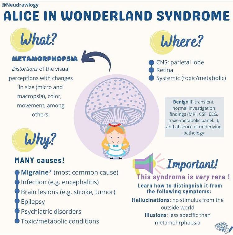 Alice in Wonderland Syndrome (AIWS) is a disorienting neurological condition that affects human perception to the senses of vision, hearing, touch, sensation, and the phenomenon of time. 2/