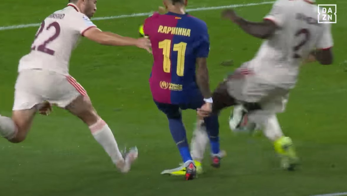 Was die Szene für #Neuer, der mMn noch einen Schritt tiefer stehen könnte, so schwer macht: #Raphinha hat eigentlich keinen offenen Fuß. Heißt, der rechte Fuß war durch Upamecano blockiert. Zwar spät, aber beeinflusst haben könnte es Neuer.