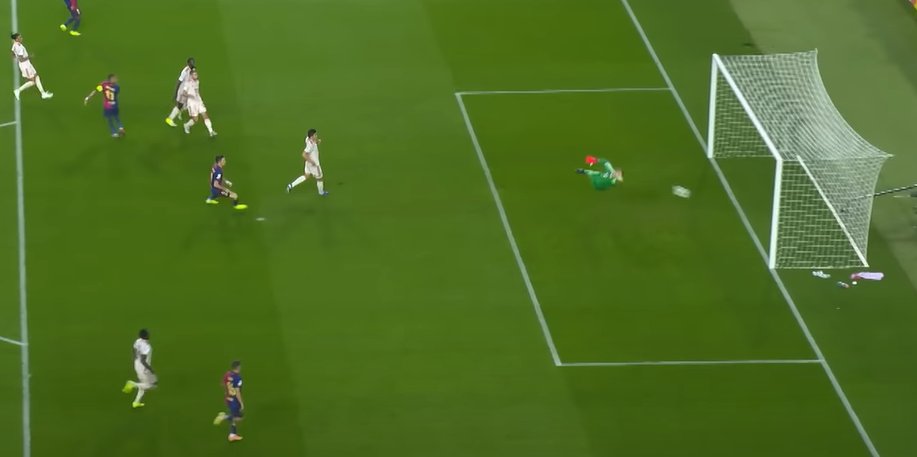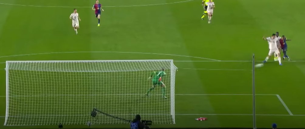 Dadurch muss #Xavi gar nicht so hart schießen, weil #Zetterer weder Druck auf ihn ausübt & er genauso viel weniger Zeit zum Wahrnehmen der Schusskurve hat. Dadurch ist er zum Spekulieren gezwungen.