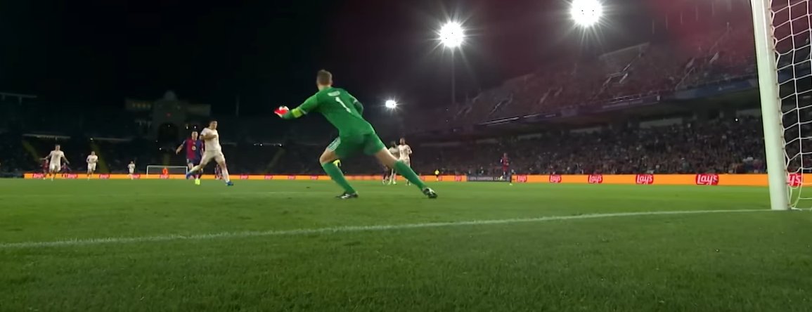 Vermutlich war es genau dieser unsaubere Kontakt von #Raphinha, der #Neuer dazu bewog, sich nicht noch weiter fallen zu lassen. Irgendwann muss er ja ins 1gg1 kommen. Bei dem Tempo des Stürmers hast du eigentlich kaum eine Chance.