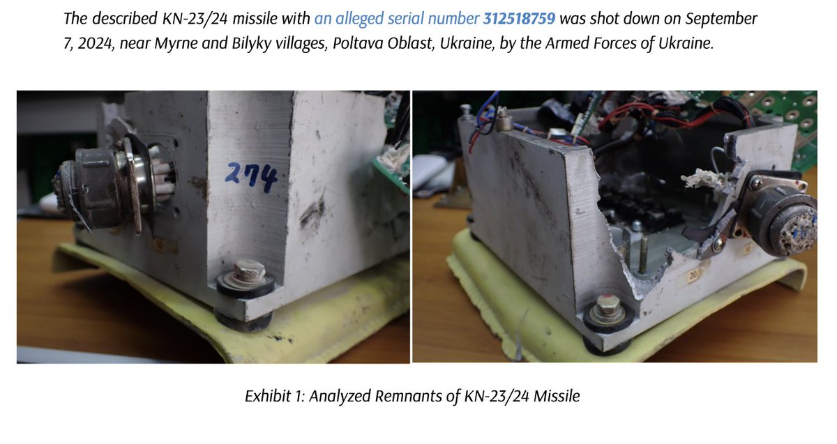 The KN-23/24 missile with an alleged serial number 312518759 was shot down on September 7, 2024, near Myrne and Bilyky villages, Poltava Oblast, Ukraine, by the Armed Forces of Ukraine 3/