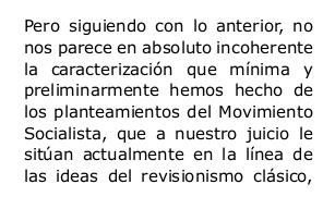 La LOD ejemplifica bien este menosprecio de la teoría. Por ejemplo, mientras dice que el MS coincide con el «revisionismo clásico» y extiende «ideas anticomunistas», la LOD también afirma que el MS está creando un «buen clima» en la vanguardia (Adelante, p. 65). [9/13]
