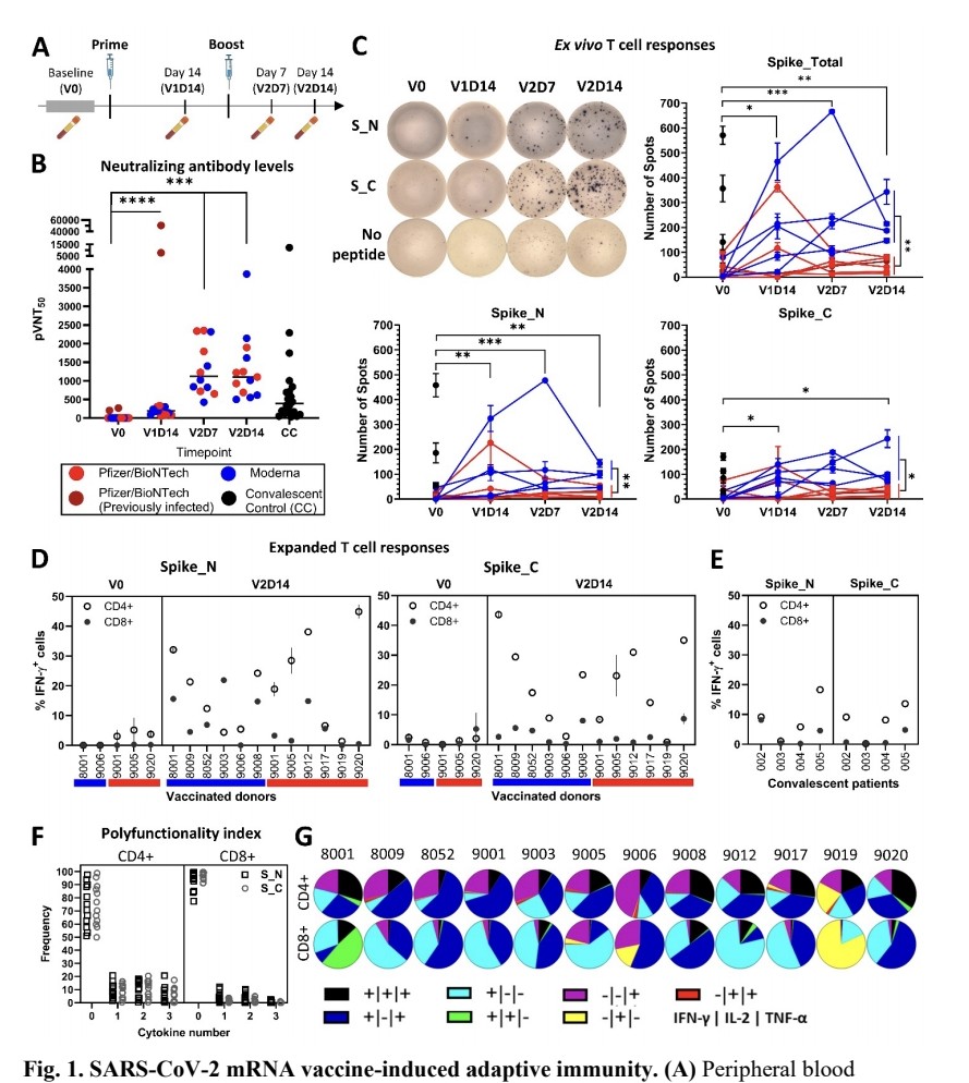 2) This study examined the immune responses generated by COVID-19 mRNA vaccines and in people who had COVID-19 before. It found that the vaccines quickly triggered strong T cell responses against the spike protein of the virus.