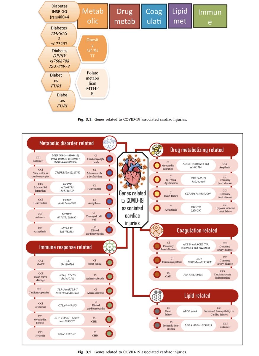 3) - PAI-1, ACE2 - These genes are involved in blood clotting and the body's response to the COVID-19 virus and can influence the severity of heart complications.