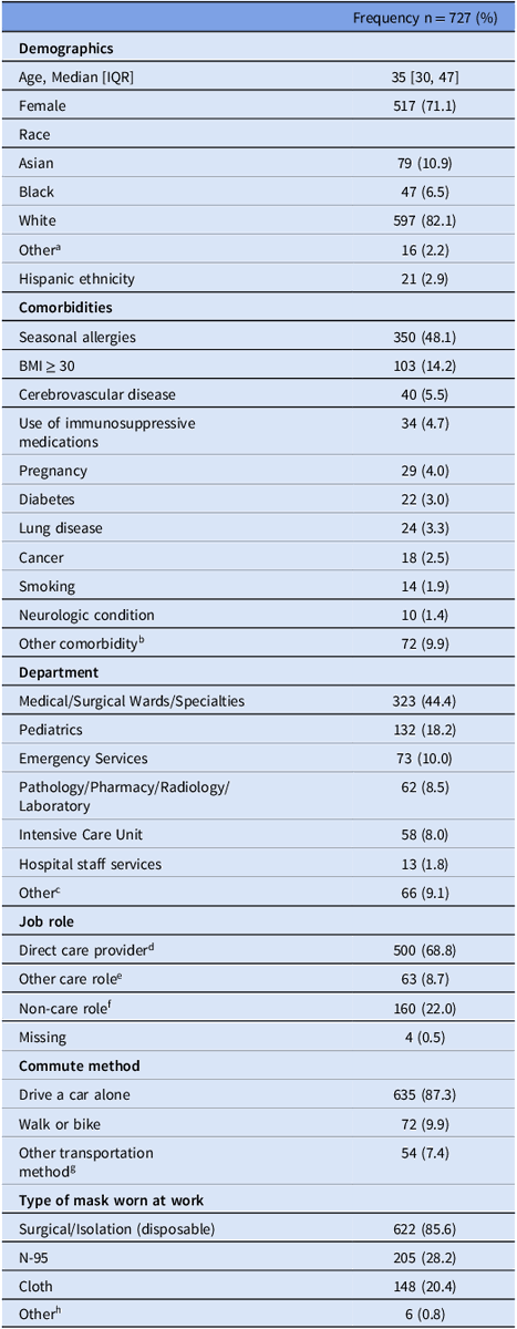 3) At enrollment, 3.7% of HCP were seropositive for SARS-CoV-2 anti-N antibodies. Seropositivity was associated with having had an illness believed to be COVID-19, as well as household and occupational exposures to COVID-19.