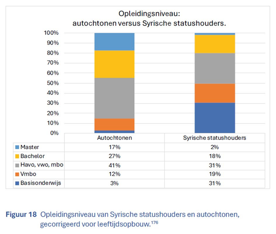 Bij Syrische statushouders ─ veruit de grootste groep ─ heeft 31% alleen basisonderwijs, tegen 3% bij autochtonen👇