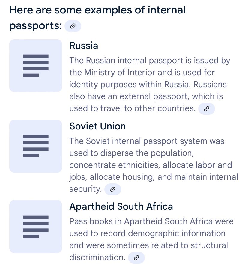 2) The federal govt would need to establish its own ID to establish who’s who. And this would be required for travel within the United States. This is what’s known as an internal passport. To get it would require birth certificate, Social Security number, and fingerprints. And⬇️