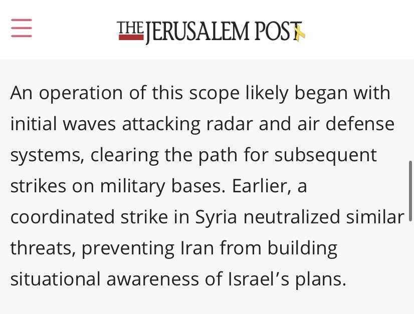 3) Yes, here we see the first phase of the operation. Suppression of air defense. Destruction of radar and SAM sites. The attack on Syrian air defense might be a clue as to the route the Israelis used into Iran. Or it just deprived Iran of early warning. Let’s keep going⬇️