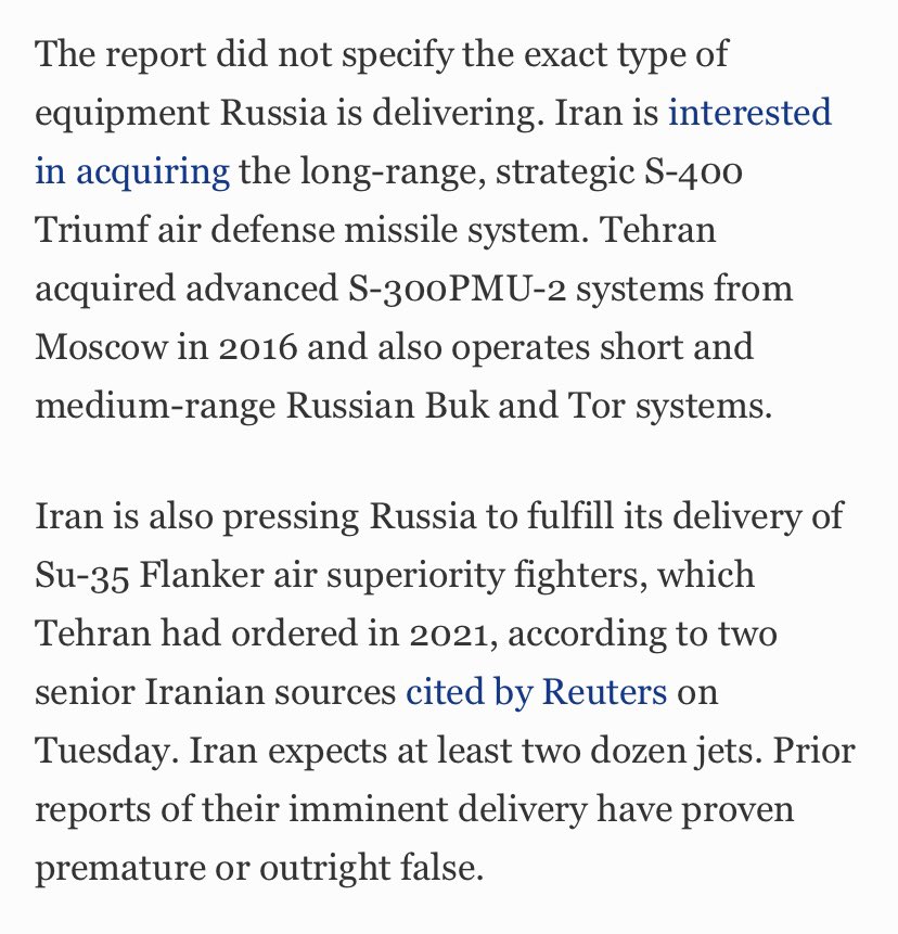 3) Well, the Russian Buk and Tor systems have had rather dismal survivability in Ukraine. Israel knows this. Oh, Iran wants 24 SU-35s? That’s sure as hell not going to help them now even if they get them. Not when they’re as vulnerable as they are now. Let’s continue⬇️