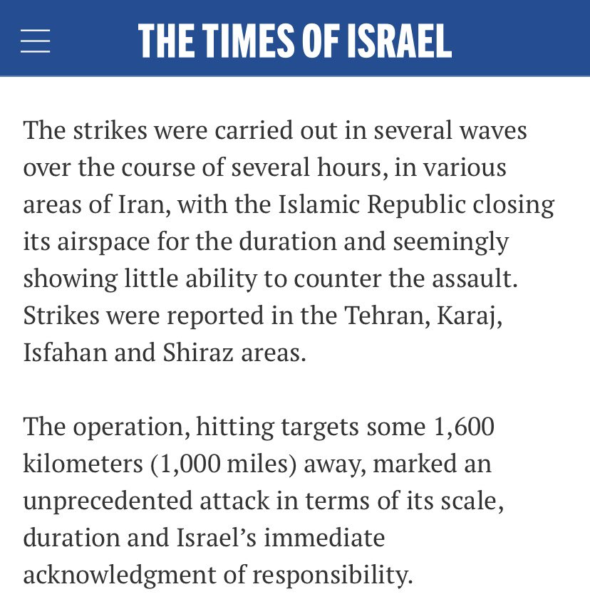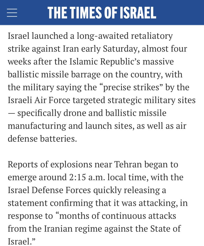 1) Here’s a Times of Israel article. It’s pretty much what I already said in an earlier thread, but with interesting details. So, Israel operated with impunity in Iranian airspace for hours. That REALLY shows the incompetence of Iranian air defense. Let’s keep going⬇️