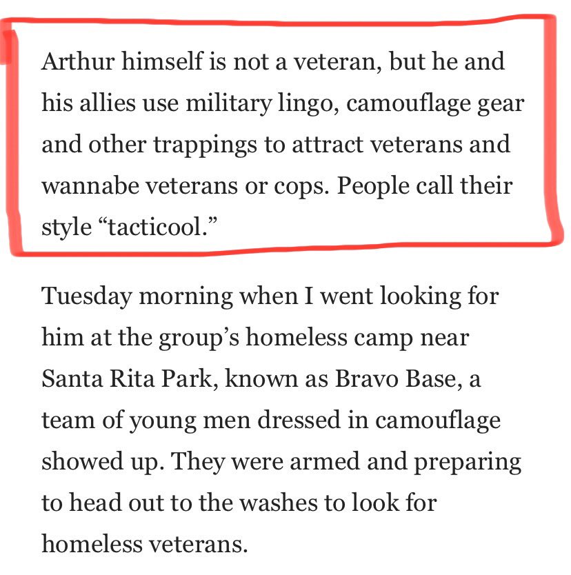 1) I know who this Veterans on Patrol group is. They were started by Michael "Lewis Arthur" Meyer in Tucson in 2015. He was going around Tucson city parks doing “homeless vets outreach”. Some homeless people started feeling harassed or bullied by him. Let’s keep going⬇️