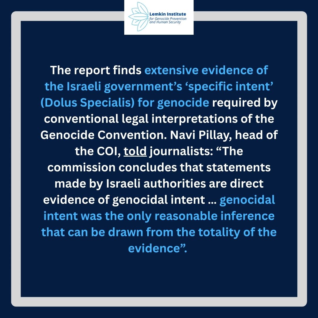 The Lemkin Institute for Genocide Prevention and Human Security welcomes the publication of the 72-page report (A/HRC/60/CRP.3) by the United Nations Independent International Commission of Inquiry on the Occupied Palestinian Territory, including East Jerusalem, and Israel (COI), published on 16 September 2025, which concludes that Israel is committing genocide in Gaza. 🧵