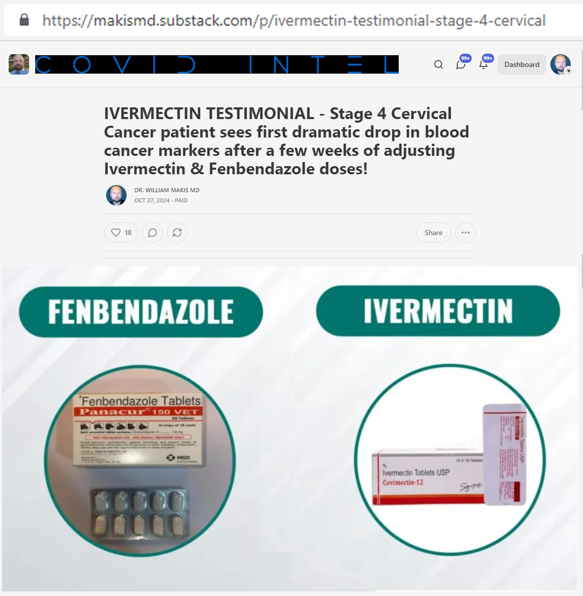 NEW ARTICLE: IVERMECTIN & FENBENDAZOLE TESTIMONIAL - Stage 4 Cervical Cancer patient sees first dramatic drop in blood cancer markers after a few weeks of adjusting Ivermectin & Fenbendazole doses!