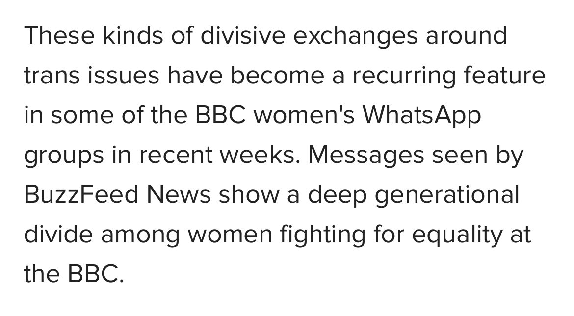 There was a large BBC Women WhatsApp group, and some of the women in it dared to have a conversation about women’s rights and self-ID. And it was leaked.buzzfeed.com/markdistefano/…