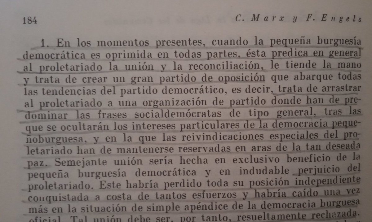 Marx y Engels escriben estas palabras en el contexto de la revolución democrático-burguesa, en la juventud del proletariado como clase. Pero los principios de independencia política, acción de vanguardia y centralización se han convertido en leyes de la organización comunista.