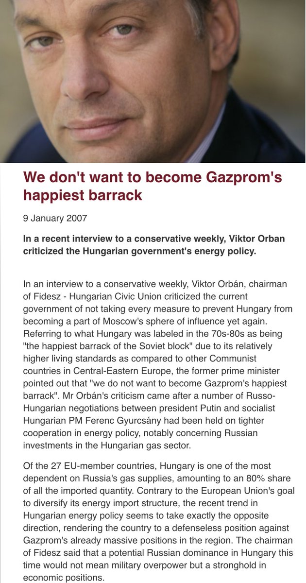 In 2007, he warned that Hungary must not become “the happiest barracks for Gazprom” and harshly criticised the country’s dependence on Russian fossil fuels.