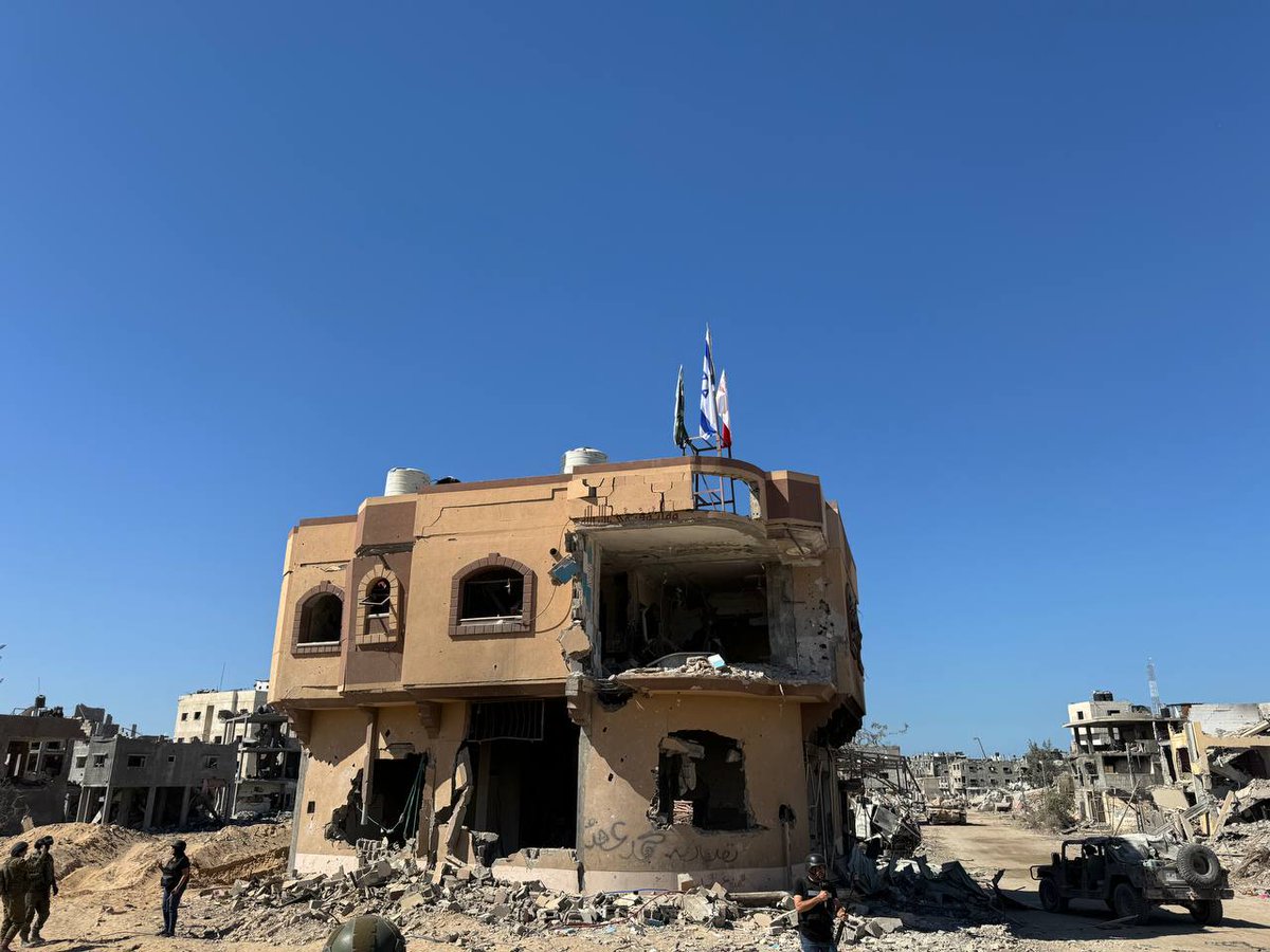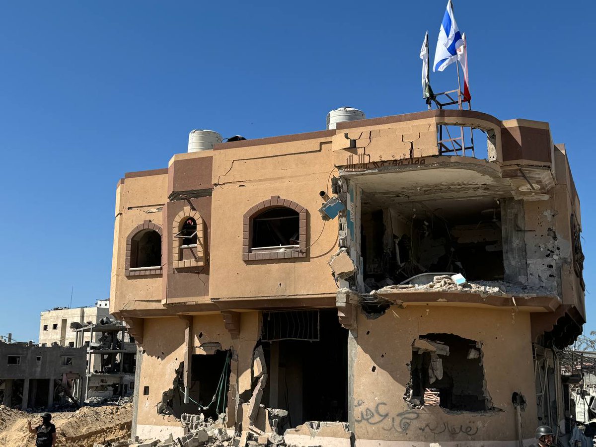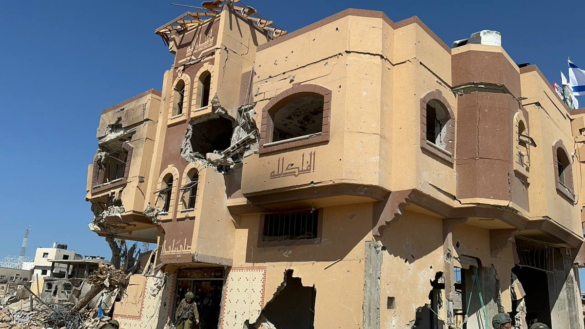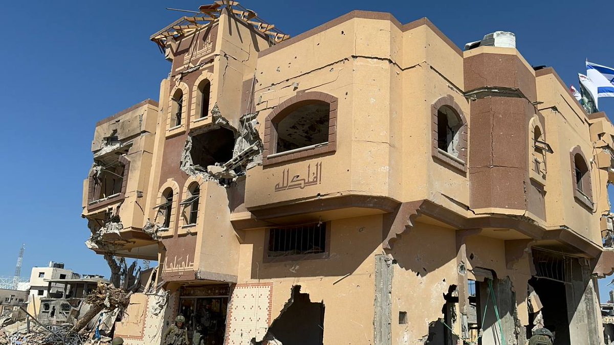 "Looking at the building from the outside - one can perhaps understand why Sinwar fled to it: of all the buildings in the area, it is one of the only ones that remain relatively intact and standing. In the photos here, you can see the impact of the tank shells on the building - from here, the shell penetrated the wall to the second floor - and eliminated Sinwar."
