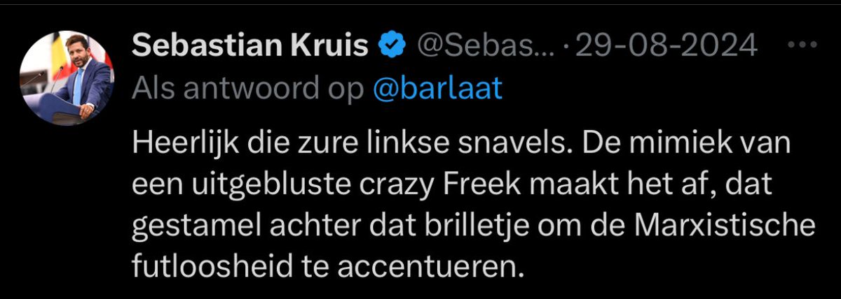 Maar op de timeline Kruis staan nog meer bijzondere reacties naar anderen, zoals deze. “Linkse uitgebluste zure snavels” is uiteraard heel schappelijke benadering. 3/x