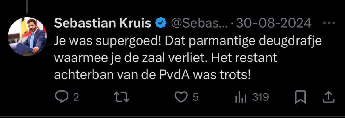 Iemand een parmantig deugdrafje is natuurlijk ook heel schappelijk bedoeld. Je moet natuurlijk dat nooit richting een PVV’er zeggen volgens Kruis, maar hij mag dat natuurlijk wel richting anderen zeggen. Dat is de logica der PVV: all animals are equal, but some… 4/x