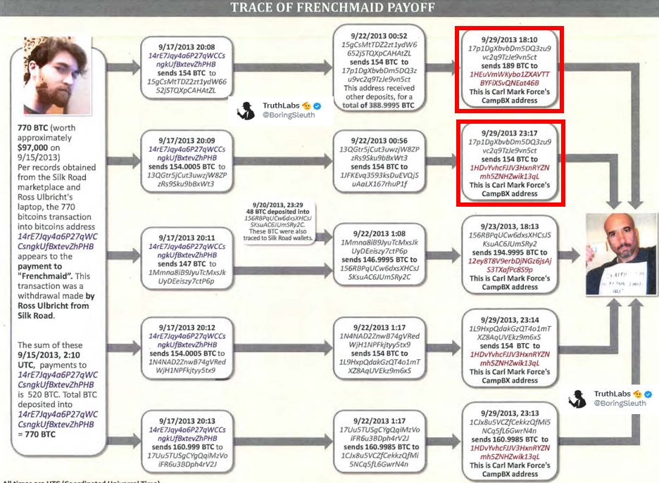 🧵Proof: The Criminal Complaint filed on behalf of the US Government vs ex-FBI Corrupt Agent Bridges, who extorted Silk Road's Ross Ulbricht, contained several inaccuracies, including failing to identify and label Bitcoin address' that would go on to fund the Ethereum ICO and several more ICO's from 2014 thru Today.