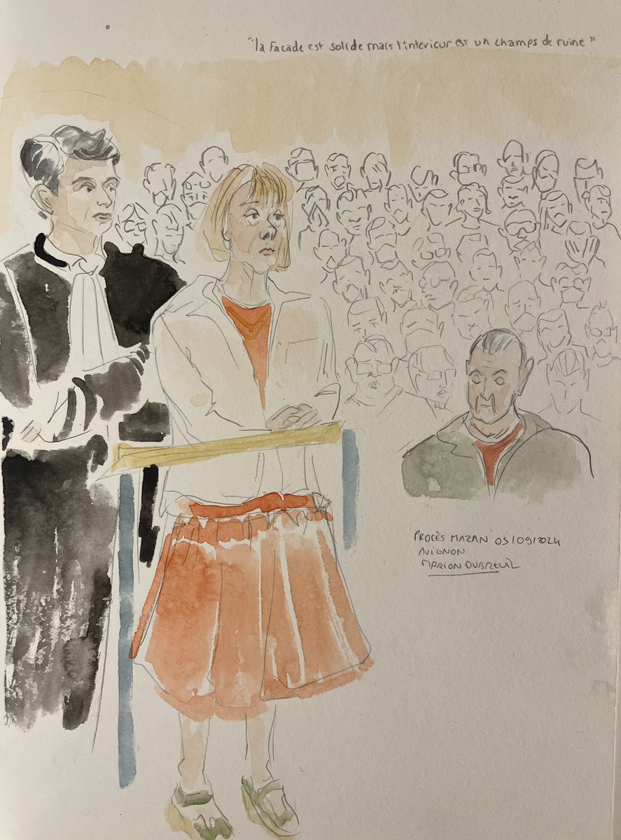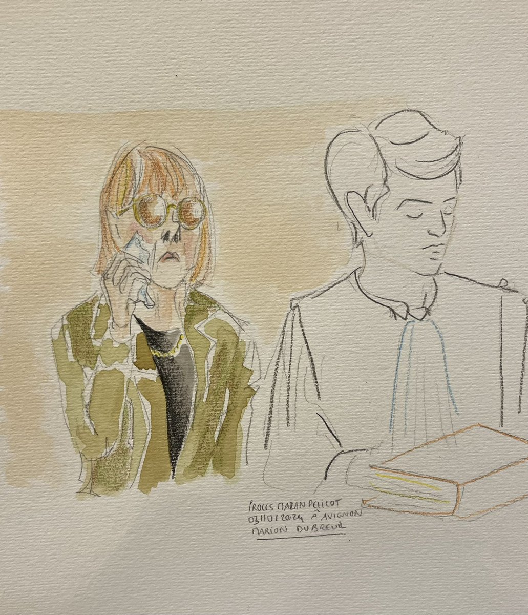 Concentrée sur le dessin d’audience et la prise de notes rapides pour cette matinée de débats où le président a souhaité interroger de nouveau Dominique Pelicot à « mi étape »✍️