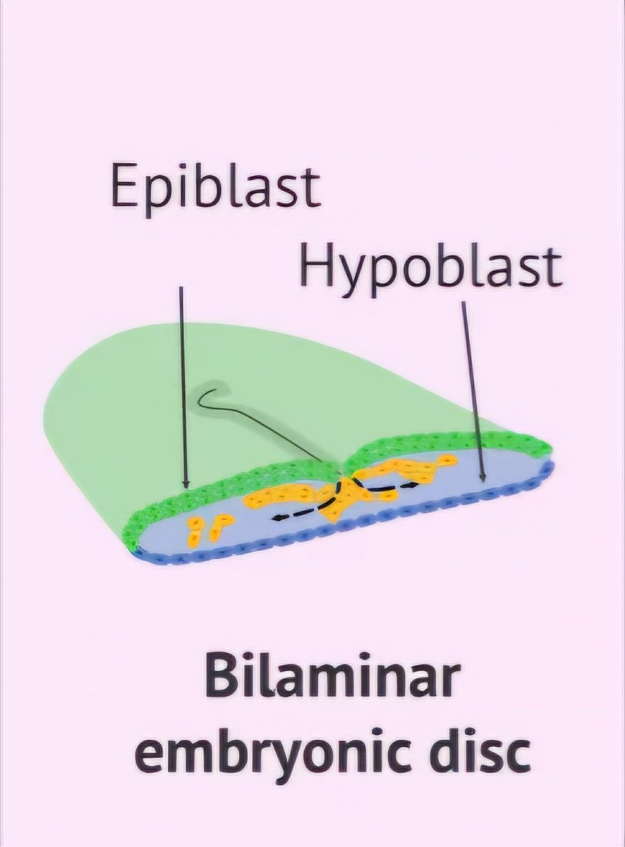 As the cells in the embryo divide, it seperates into two spaces with a flat disc in between. This disc becomes the template for how your body is structured from top to bottom, and side to side. 3/13