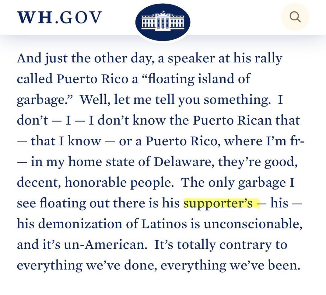 The Presidential Records Act prohibits altering official transcripts, which is what the White House did. And the alteration makes no sense. The White House is now claiming Biden was referring to the racism of Trump's supporters, but the transcript refers to "his supporter's."