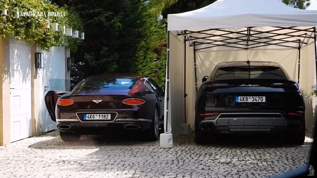 His wife on her Porsche Taycan and Rollce Royce with ukrainian registration.