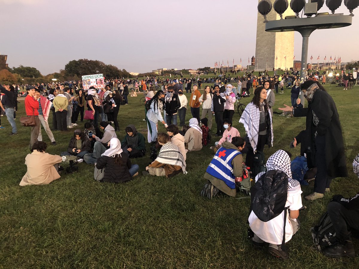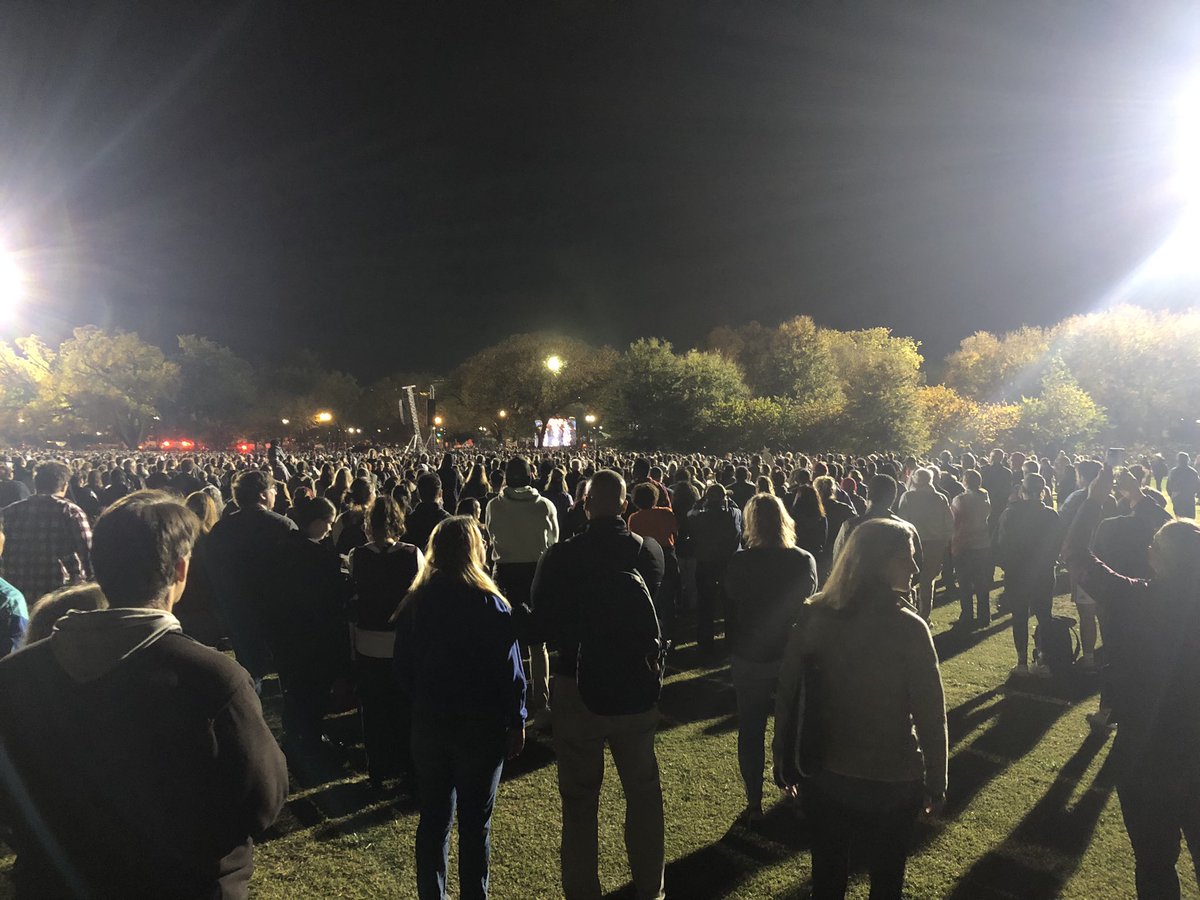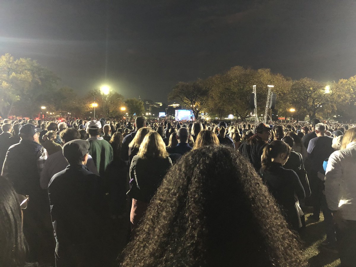 Nu de Black Eyed Peas die je altijd bij meetups van Jesse Klaver hoorde. Inmiddels ook duizenden mensen - denk ik - op dit grasveld. Ook Palestina-demonstranten.