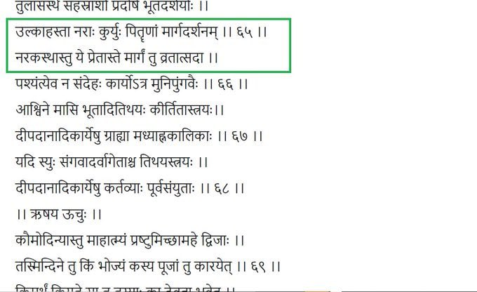 The Skanda Purana says Diwali should be celebrated by holding Ulkas in our hands. This will show path to our ancestors.