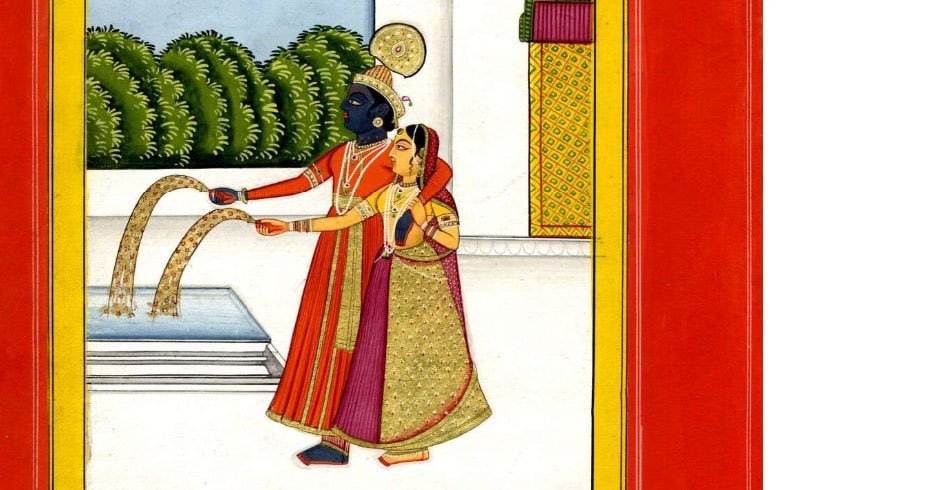 A painting of Krishna watching Dipavali fireworks. From Kishangarh(Rajasthan).