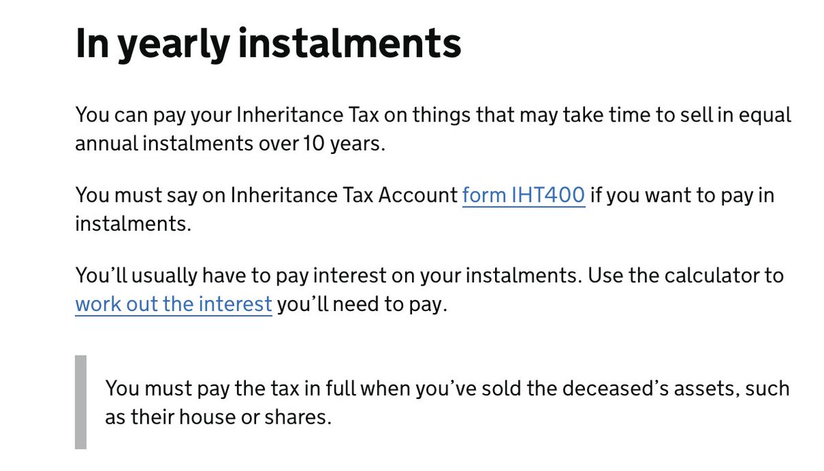 And even for those large farms worth over £2M the Chancellor has still given them a tax break, relative to all other estates. APR will only be charged at half the normal IHT rate - ie 20% not 40%. And unlike other estates farms can pay their IHT spread over a 10 year period. 6/7