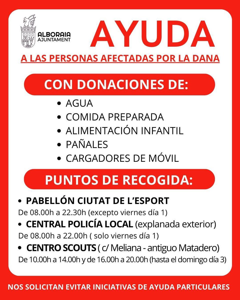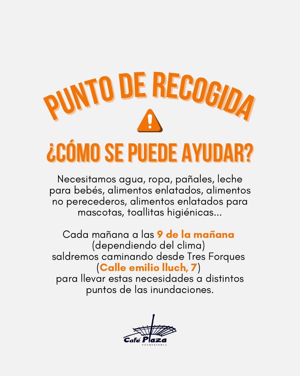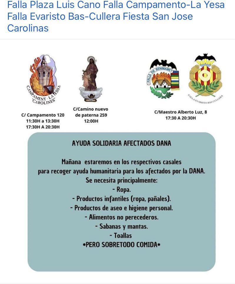 ⚠️URGENT: La gent de La Torre, Castellar-Oliveral, Forn d’Alcedo, Benetusser, Sedaví, Alfafar, Massanassa i altres creua buscant productes de primera necessitat és hora d’autoorganitzar-nos i ajudar! Vos deixe ací els punts de recollida. Per favor feu difussió. ⬇️⬇️