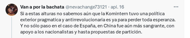 Buenas de nuevo, centremos el debate. Te recuerdo que tu primer hilo hace referencia a un tuit (ver la captura de mi siguiente tuit) que acusa a la IC de promover una política nacionalista y antirrevolucionaria.