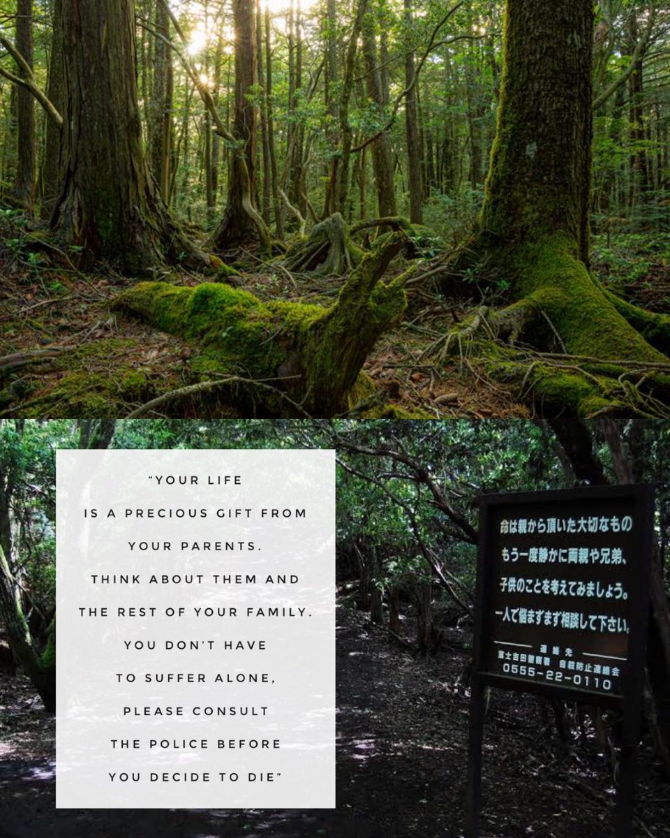 17. Aokigahara, or the Sea of Trees, is historically known as a home to yūrei, or ghosts, in Japanese mythology and has been associated with suicide since the 1960s, becoming known in English by the nickname "Suicide Forest".