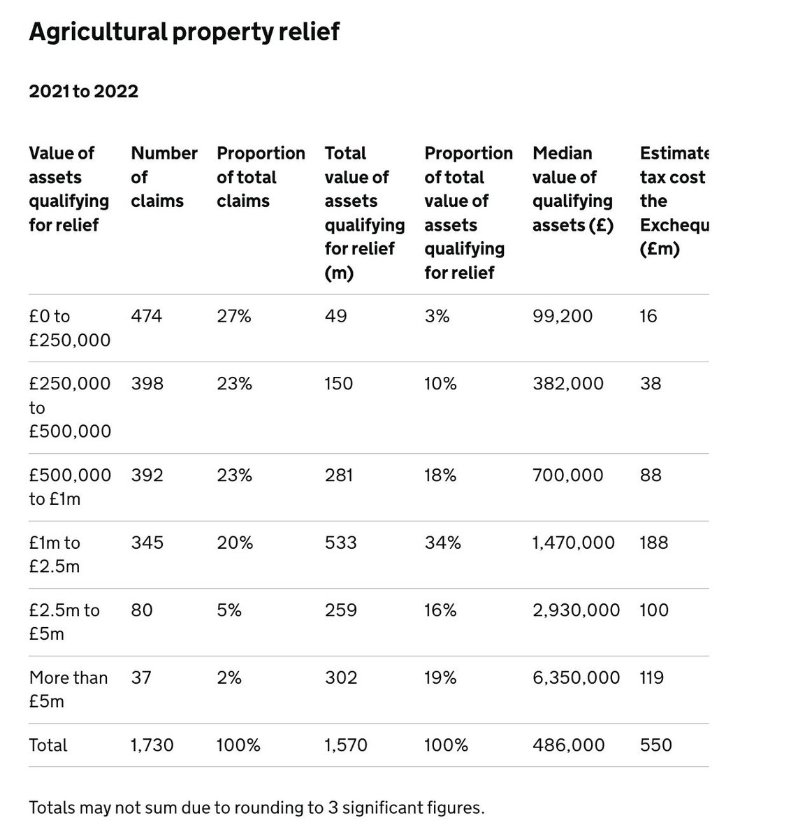 Why 500? Because this table shows only 500 farm estates claimed agricultural property relief (APR) of more than £1m in 2022. Image