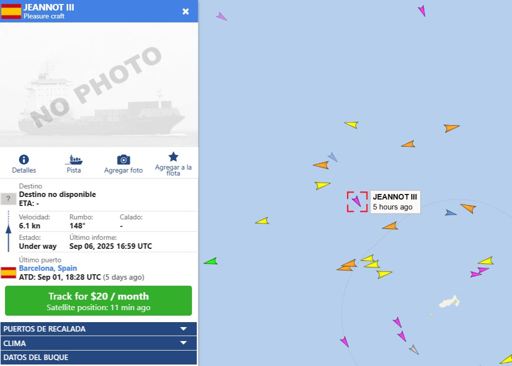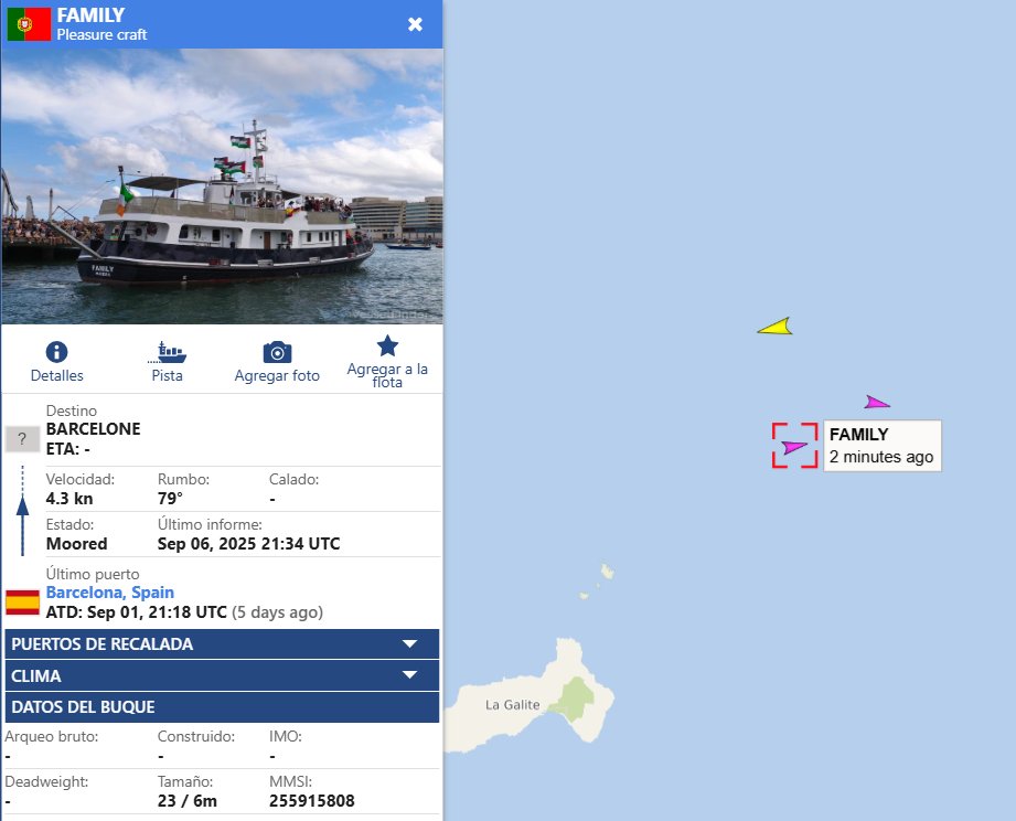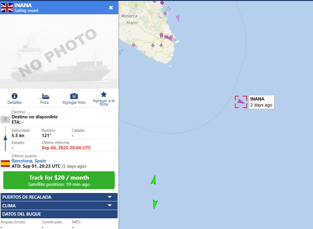 🚢ADARA bandera Española, lo consideran de la flotilla, pero no ha salido aun de Menorca