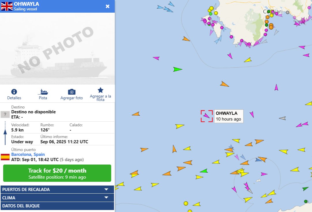 🚢INANA bandera Británica, la última posición fue hace dos dias saliendo de Menorca, ahora esta frente a las costas de Túnez