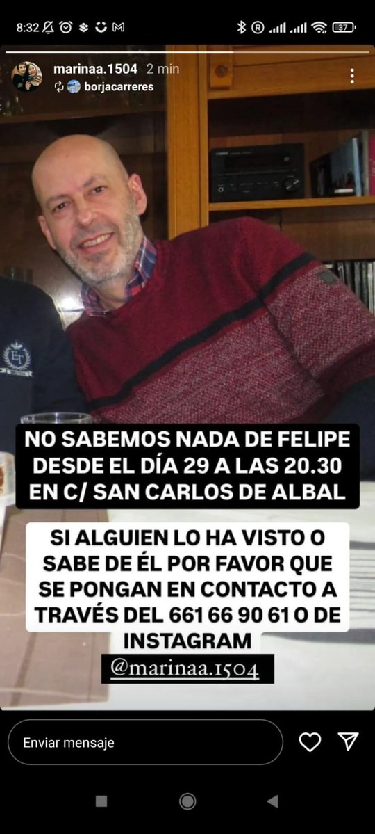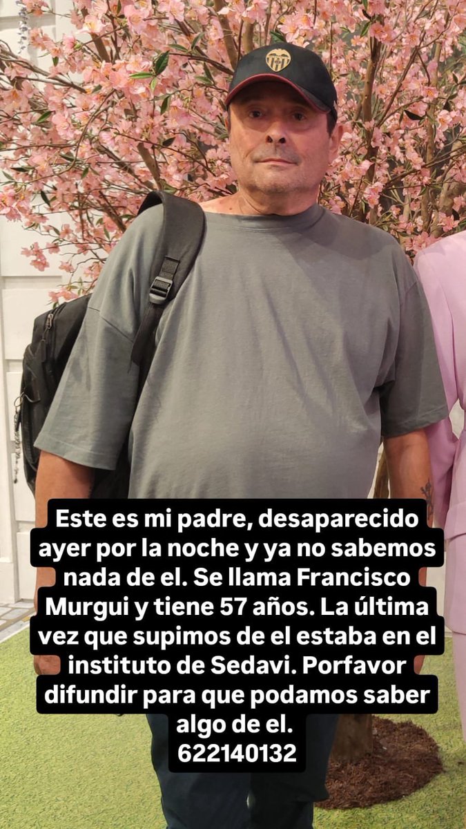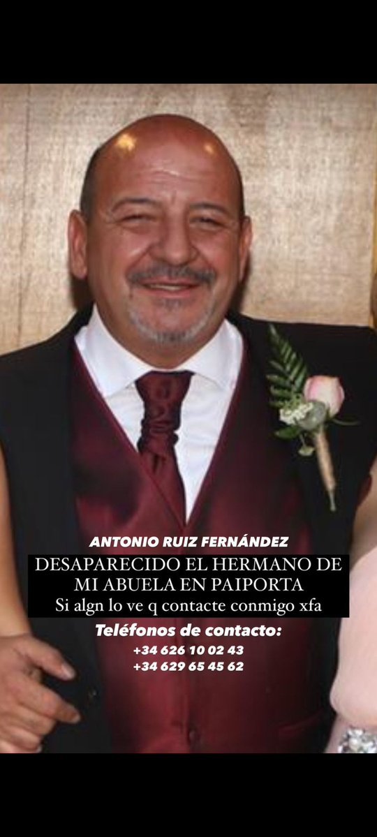Desaparecido el 29 de octubre cuando circulaba en coche desde Torrent hacia Aldaia. No se sabe nada mas de el