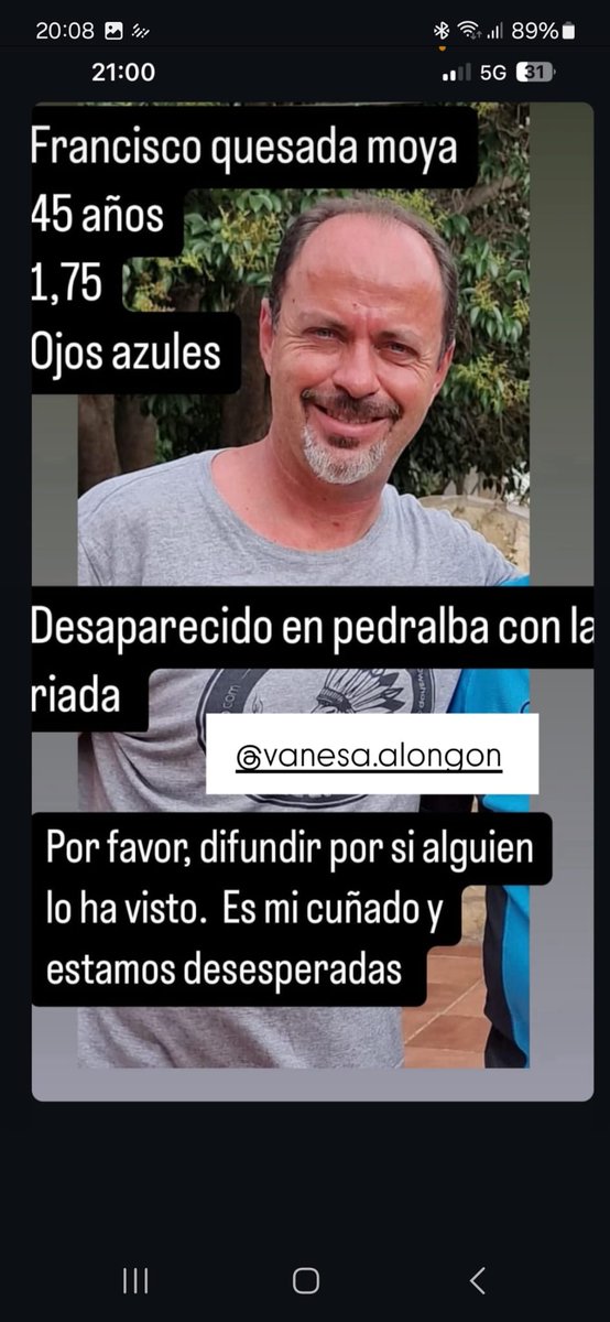 Desaparecido el 29 de octubre, estaba trabajando en el polígono industrial pahilla, empresa PROLABS en Chiva