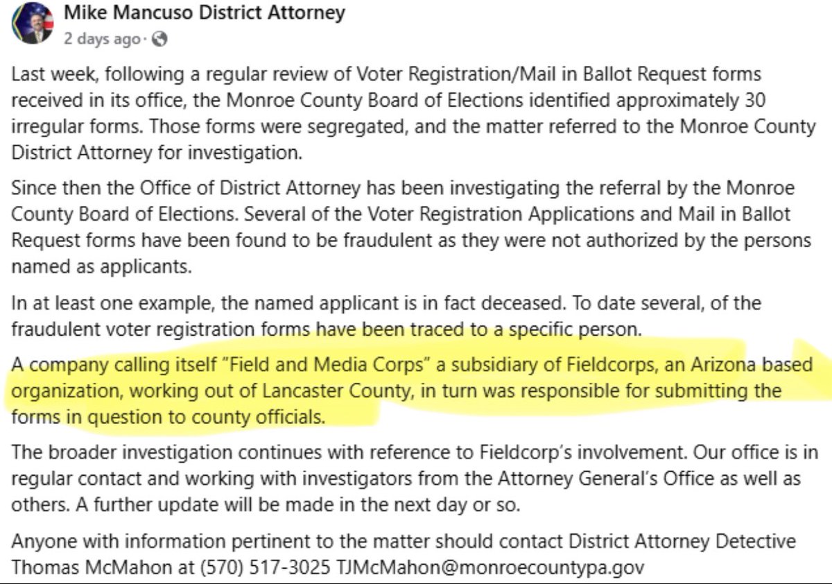 Well the firm that paid him while he stole from YOUR OFFICE, Fieldworks, is now under investigation for massive voter fraud in multiple counties in Pennsylvania.