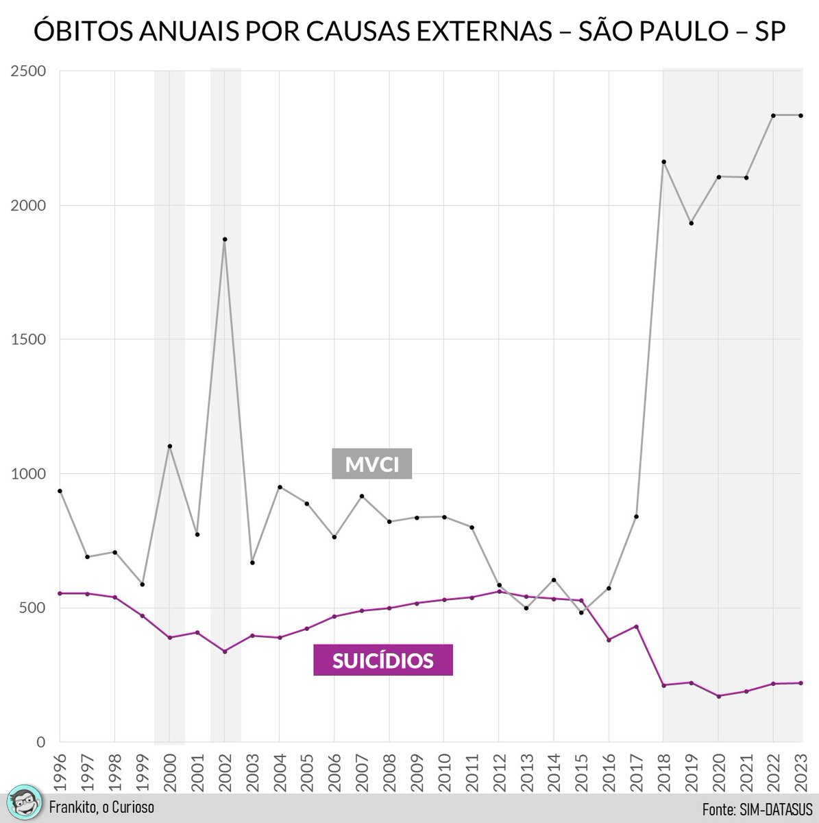 Vejam aqui o que ocorre com suicídios: começam a cair, ao contrário do esperado - e MVCIs sobem.