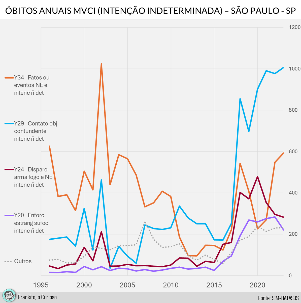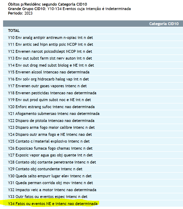 4. Aqui a comparação com os homicídios - chegamos à bizarra situação de ter 6 vezes mais óbitos por intenção indeterminada que por homicídios em 2023. Isto não pode estar certo...