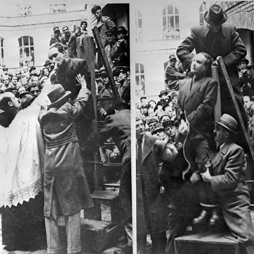 17. Hungarian Prime Minister Ferenc Szálasi is given the last rites before being hanged as a collaborator, 1946.
