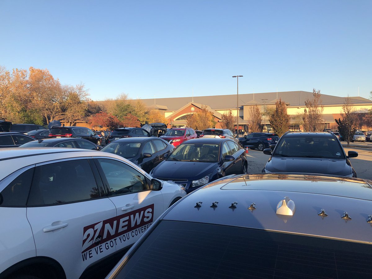 Er is echt een enorm parkeerterrein. We gaan nu de persbalie zoeken.