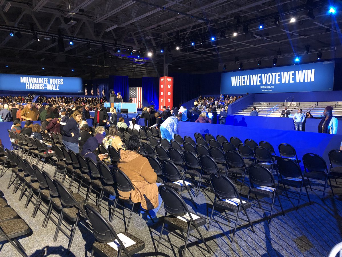 In Milwaukee, de grootste stad van Wisconsin, houdt Kamala Harris een rally. #draad #erbij #live